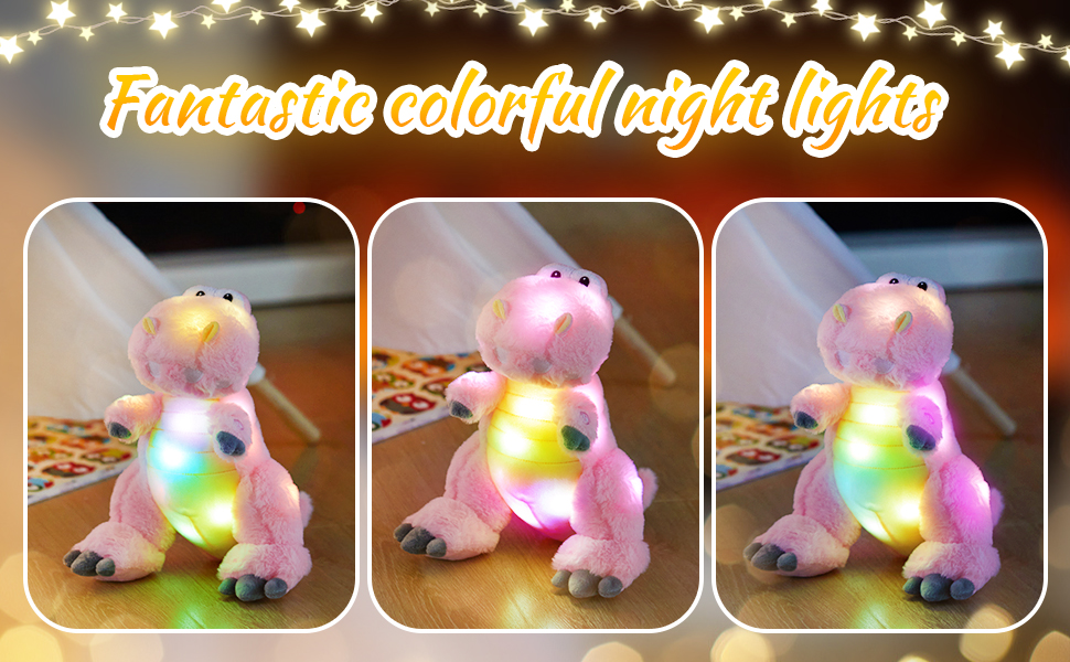Amazon Com Houwsbaby 13 Led Glowing T Rex Dinosaur Colorful Light Up Stuffed Animal Soft Plush Toy Hugging Gift For Kids Boys Girls Babies Accompany At Night Pet Decoration Holiday Birthday Pink Toys